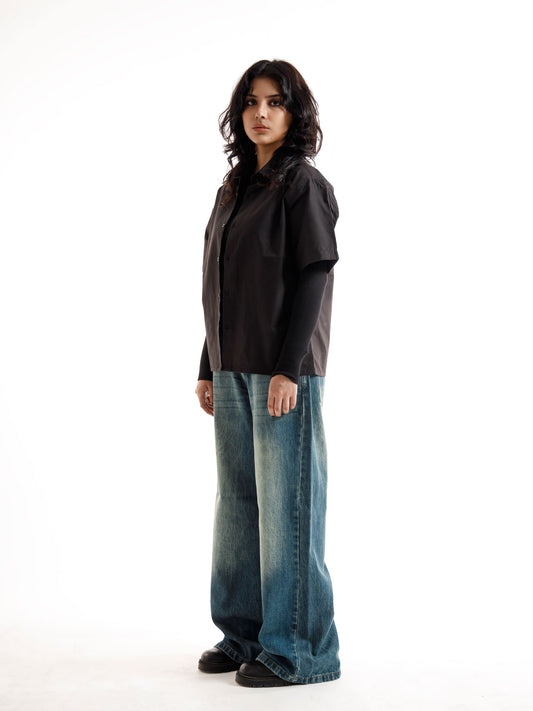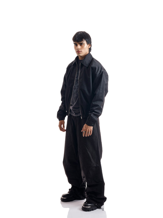 SHIRT COLLAR COTTON JACKET BOXY BLACK