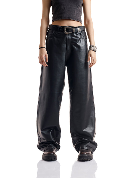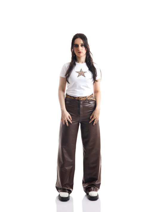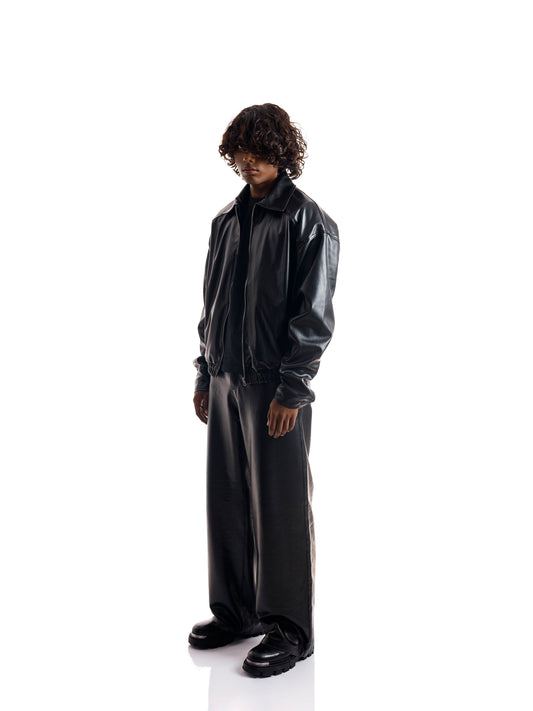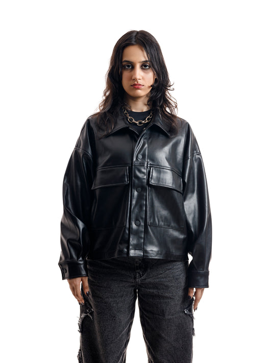 SHIRT COLLAR FAUX LEATHER JACKET OVERSIZED (COFFEE BROWN)
