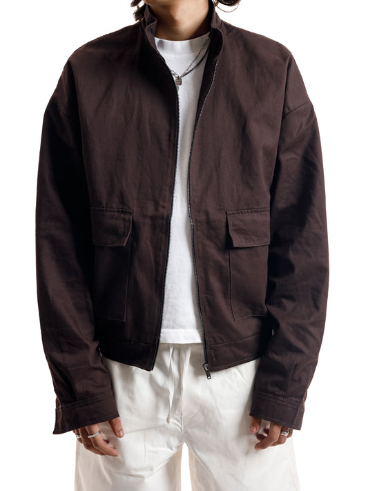 Sold outBANNED COLLAR COTTON JACKET BROWN